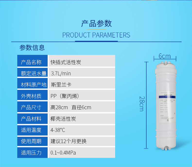 Tianchuan small dragonfly Qingchuan quick-inserted active carbon T33 filter core energy saving straight water dispenser water purification filter commercial