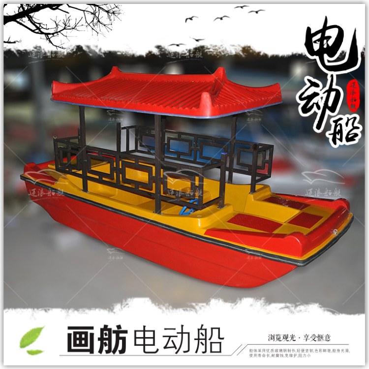 Painted Boat Electric Boat Sightseeing Boat Scenic Cruises Fiberglass Amusement Boat Water Cartoon Pedal Boat Patrol Boat
