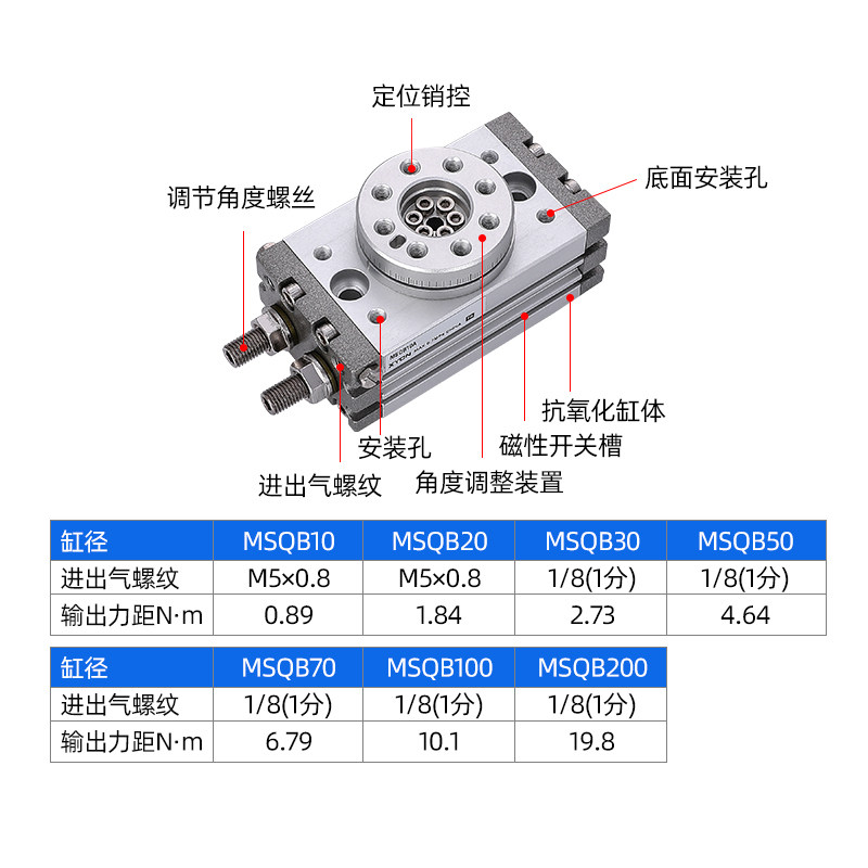 Rotating pendulum table cylinder MSQB1A 2A 3A 7A 7A 20A MSQB10A 20A 30A 30A 70A 70A 100A R