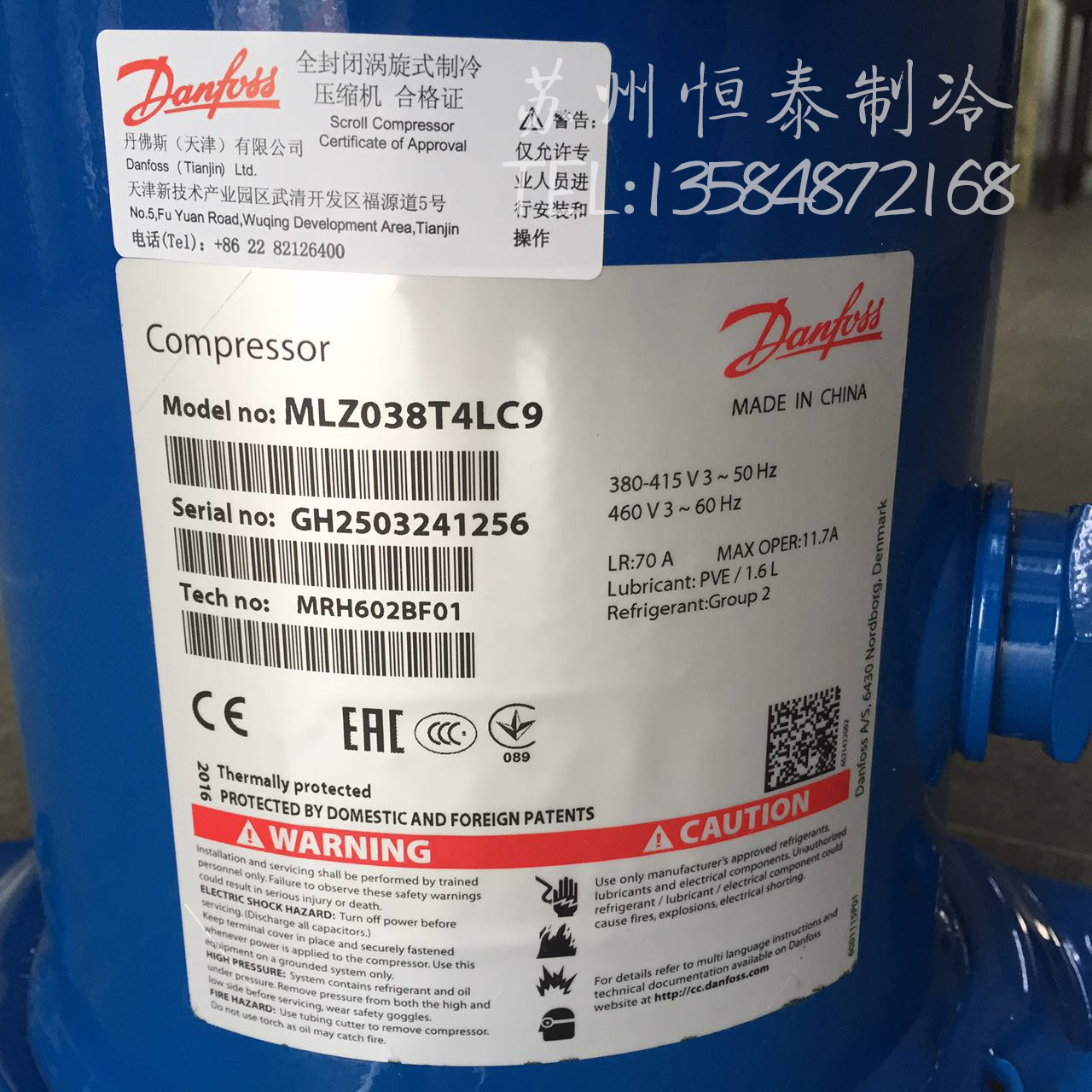 New Danfoss compressor MLZ038T4LC9 5 R404A frozen scroll air conditioning refrigerator compressor