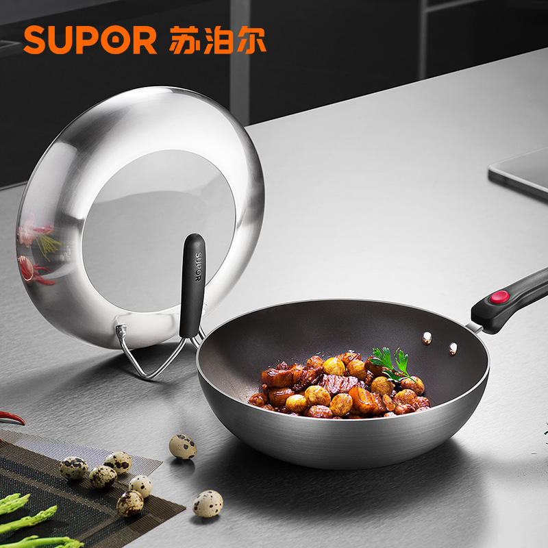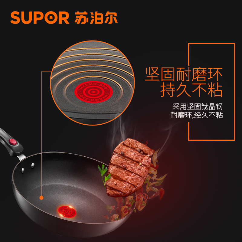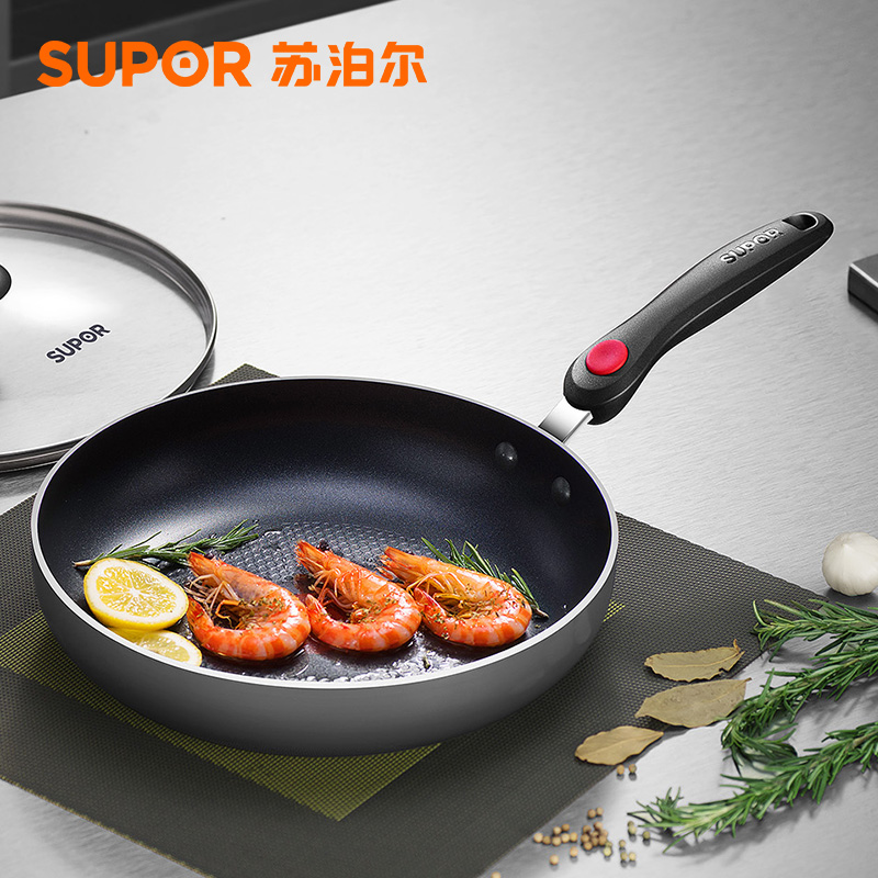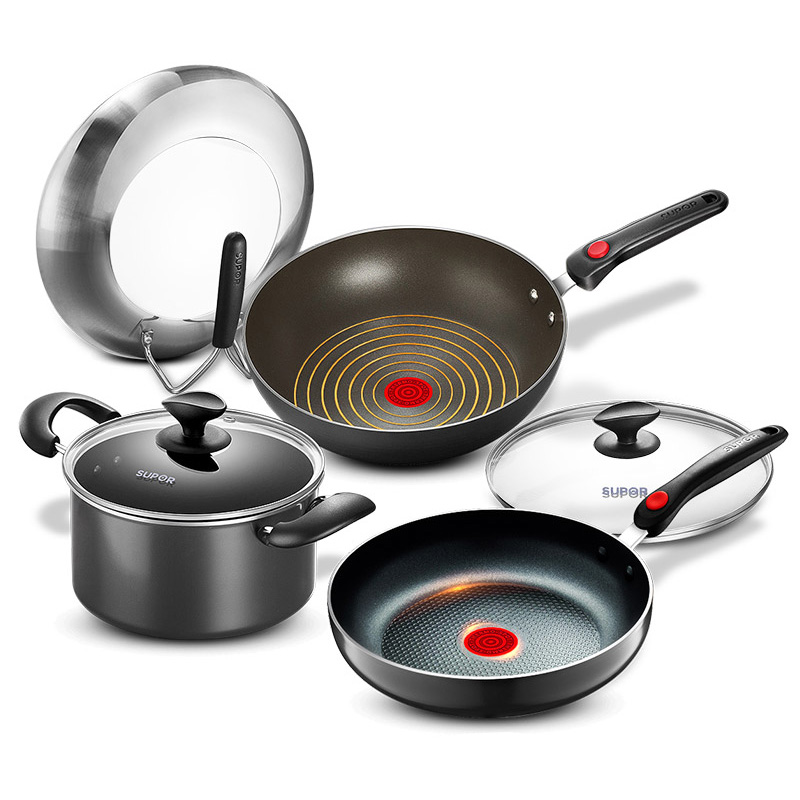 Supor 2nd generation fire red dot pot kitchenware set combination three-piece frying pan less oily smoke non-stick pan TP1627E