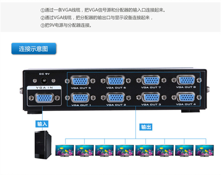VGA dispenser 1 minute 8 split screen with high-definition film computer monitoring display 10% 8 1 in 8 out