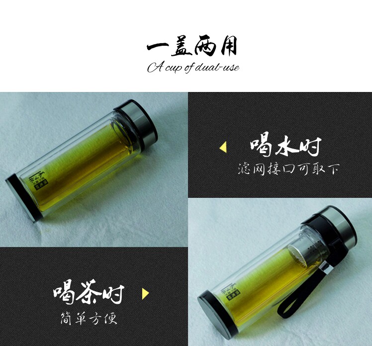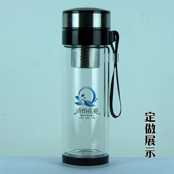 Comforter double-layer glass custom men's tea cup Household tea water separation cup Men's portable water cup