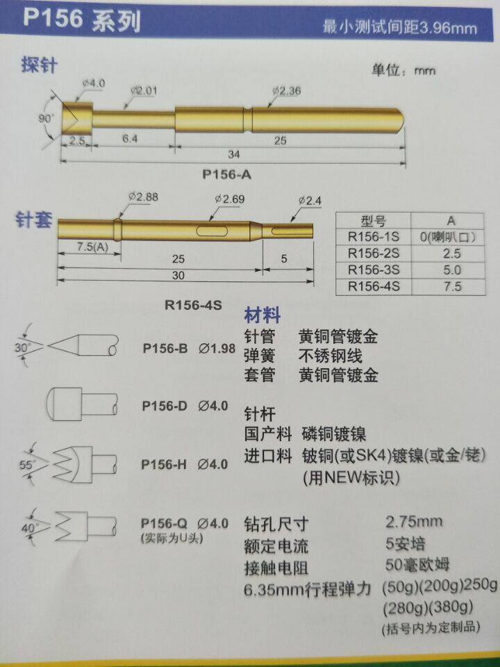 Huong probe PA156-E D J gold plated P156-E D 4 0 head 2 4 test pin 2 7 needle cover