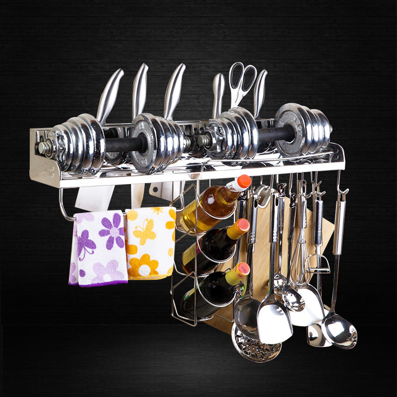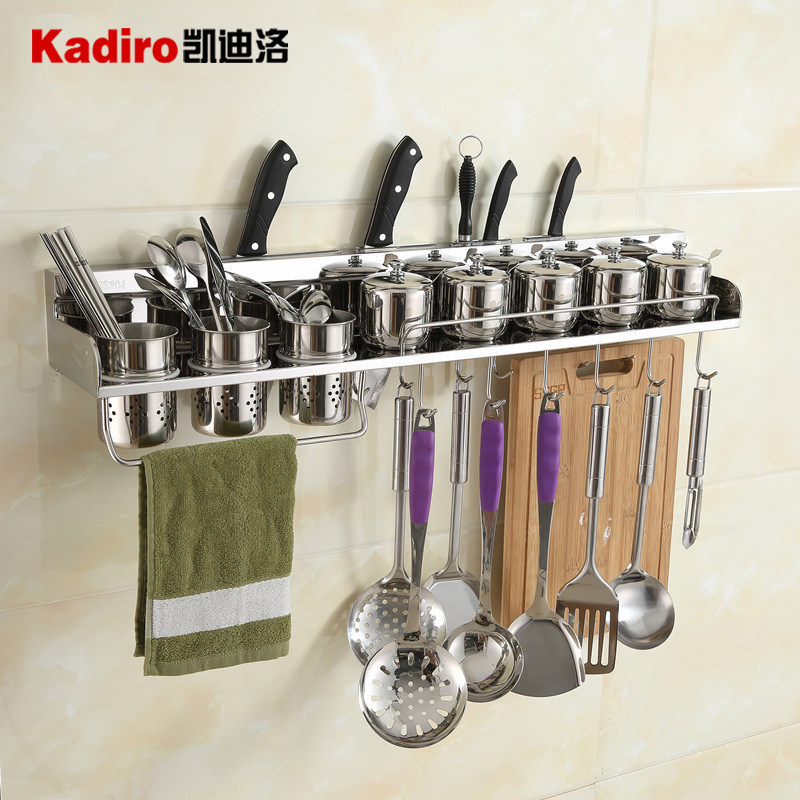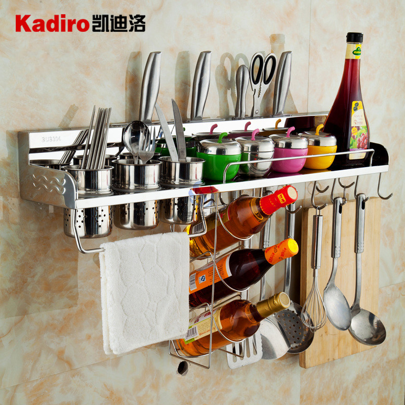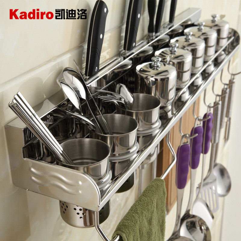 304 stainless steel perforated kitchen shelf Knife holder Seasoning spatula rack Wall-mounted kitchenware storage shelf