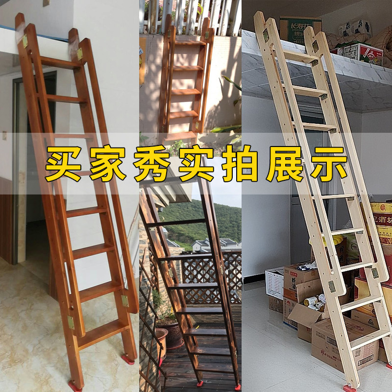 Wooden ladder bunk up and down ladder home attic stairs extra thick handrail up and down bed straight ladder step ladder climbing ladder