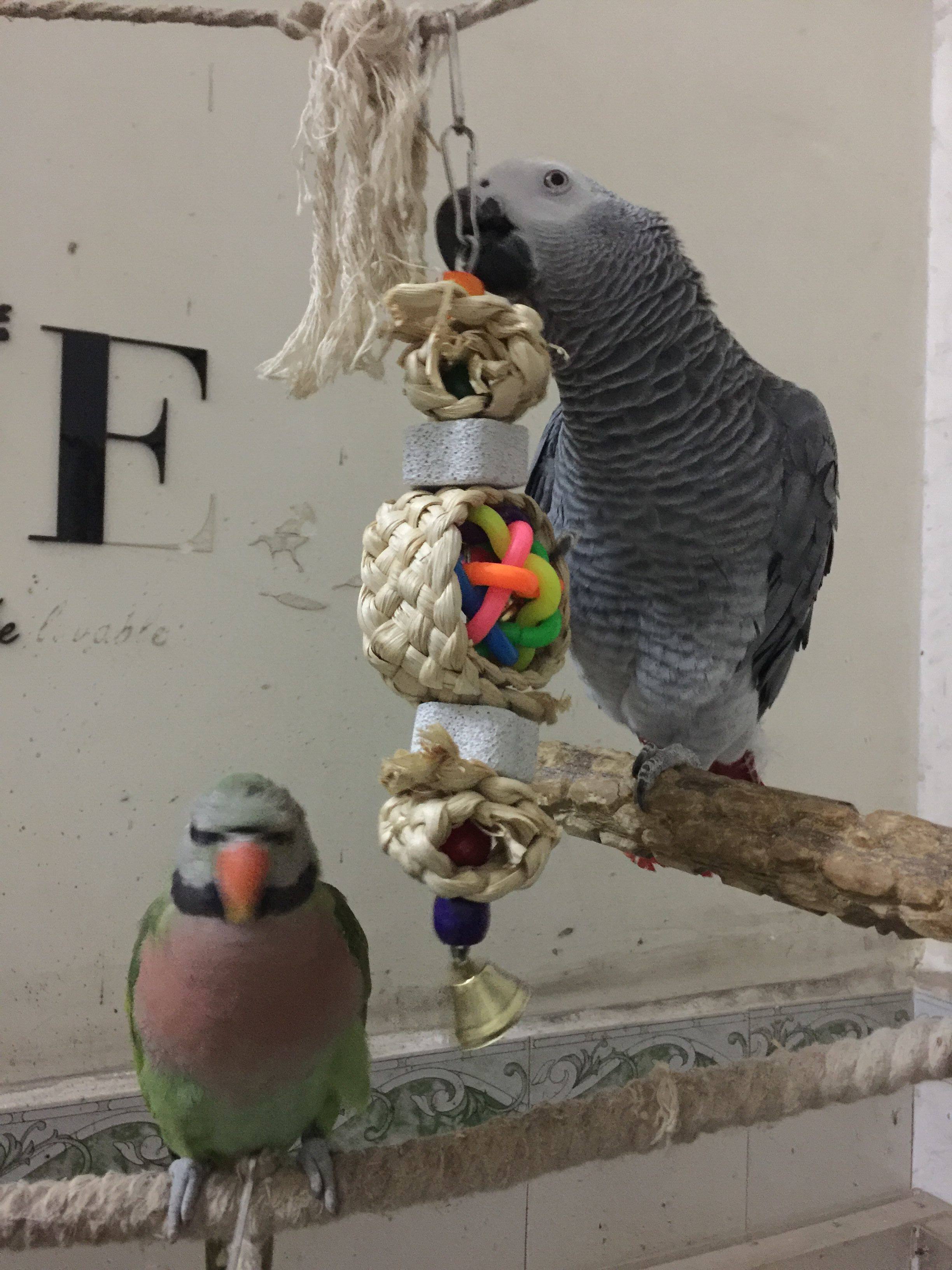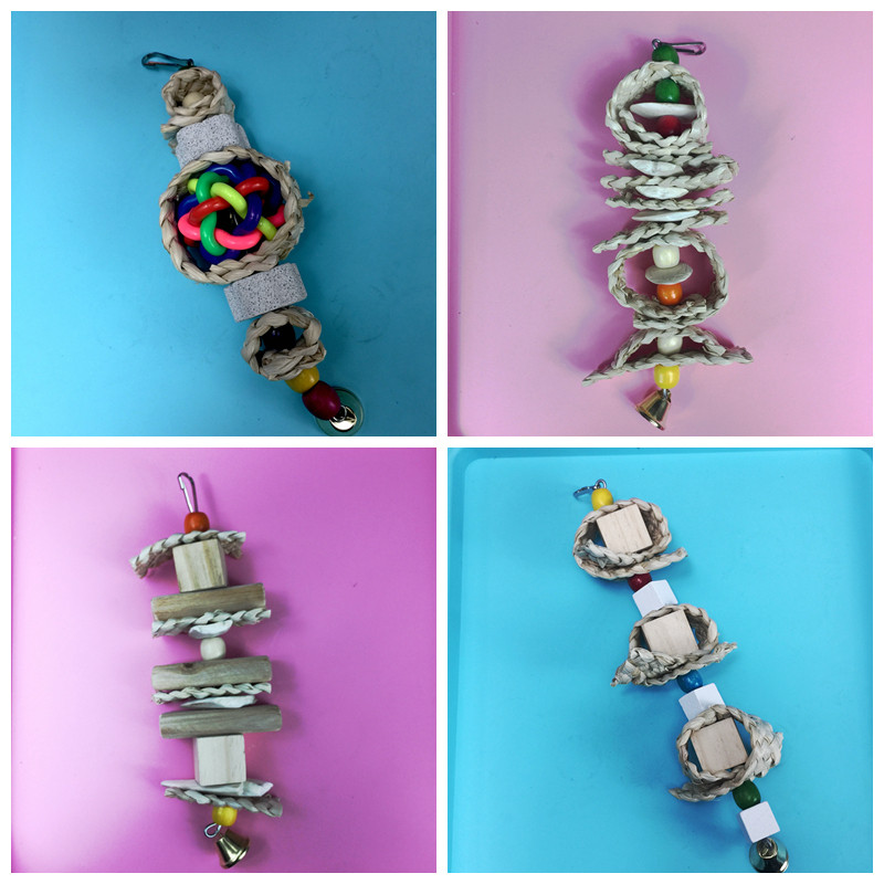 Parrot nibbling with toy ink fish bone corn leaf braided toy grindstone rattan ball toy silk melon to nibble with toy