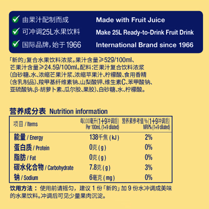 (Official Direct) Sunquick New Concentrated Mango Juice 2 5L Cocktail Accessories Concentrated Juice