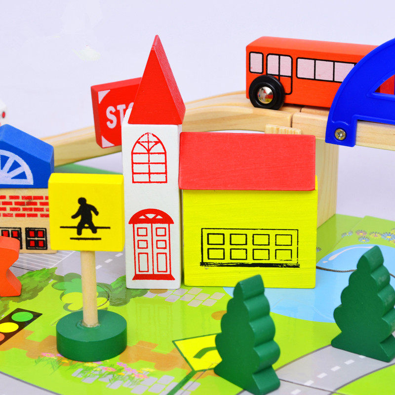Children's puzzle slip train toy City rail overpass plug and assemble block puzzle