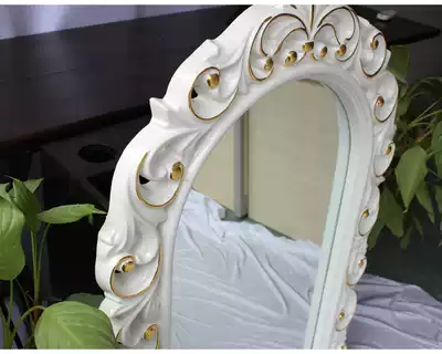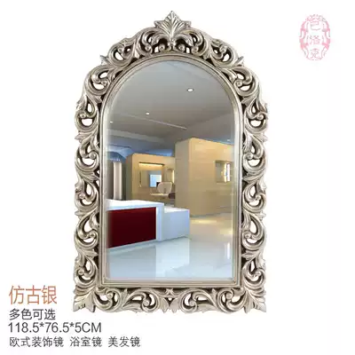 Home improvement mirror Bathroom mirror European-style PU frame carved retro bathroom mirror makeup mirror Beauty salon barber shop mirror