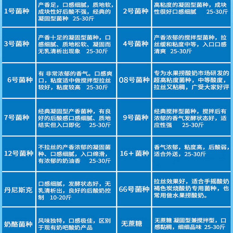 No. 2 No. 9 Fresh milk bar Special old yogurt strain Commercial solid sour milk powder liquid yoghurt starter 20