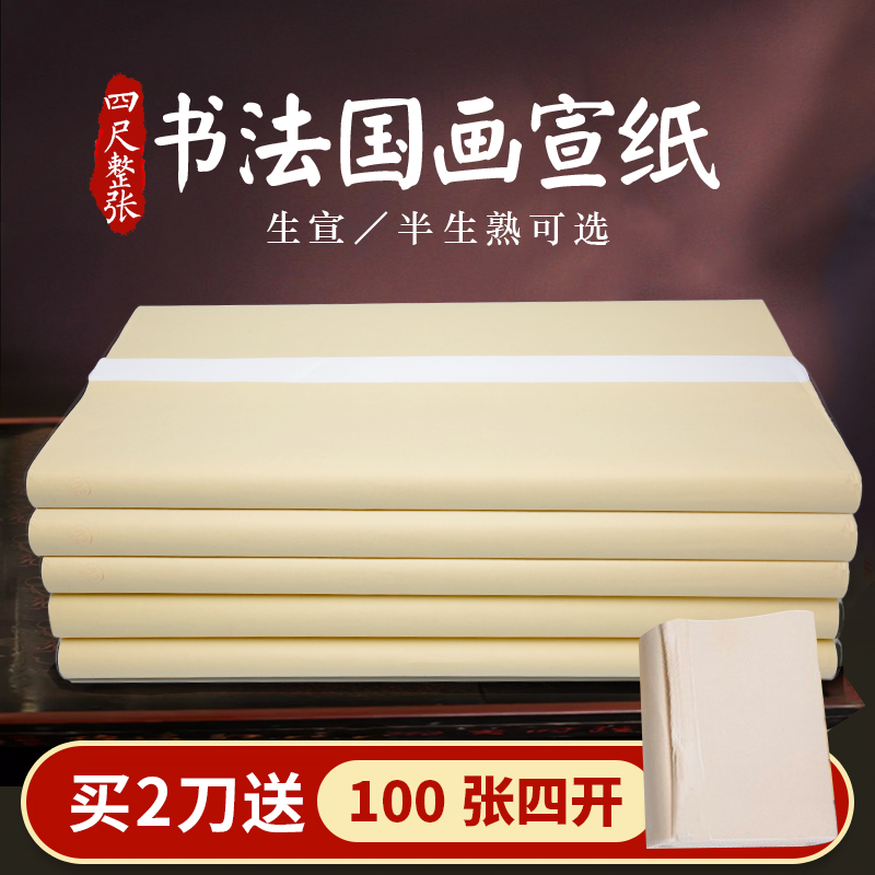 Rongbaozhai calligraphy and painting practice Rice paper Students Xuan Chinese painting special paper Brush calligraphy paper Beginners cooked Xuan half-cooked half-cooked art students Raw edge paper wholesale 100 pieces of rice paper Calligraphy special paper