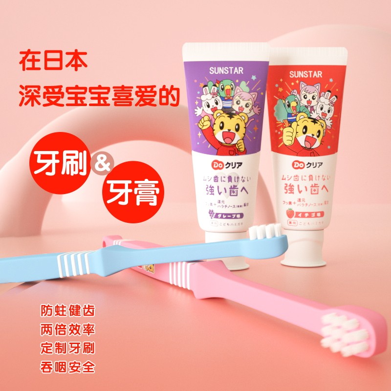 Japan imported Qiaohu cartoon children's soft hair toothbrush toothpaste set 0-1-2-3-4-5-6-7-8 years old