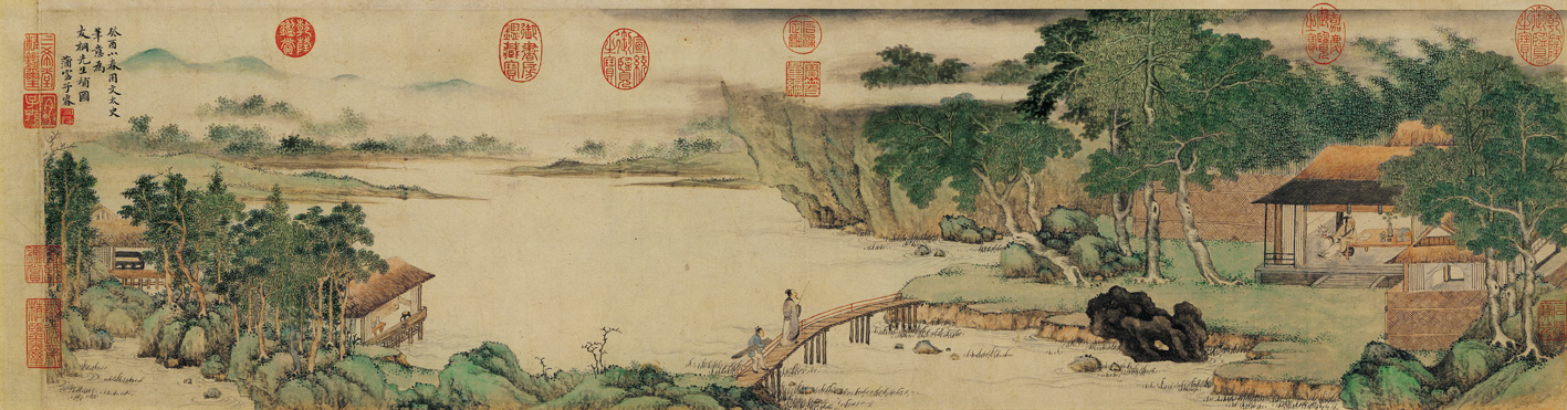 Original print on Rui with Qin to visit friends Picture Chinese painting characters landscape banner Authentic copy painting Living room Chinese hanging painting