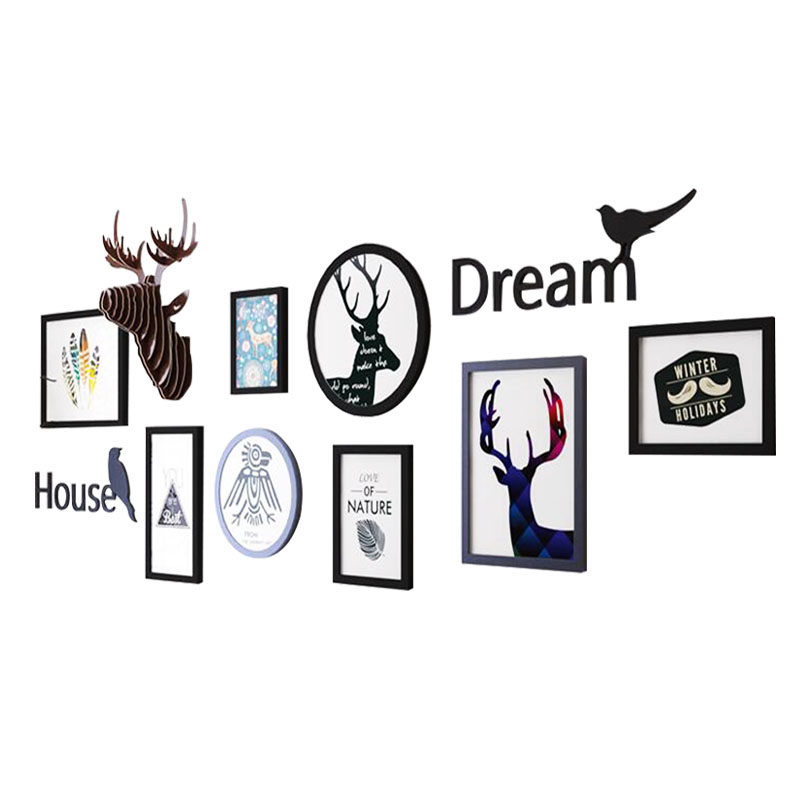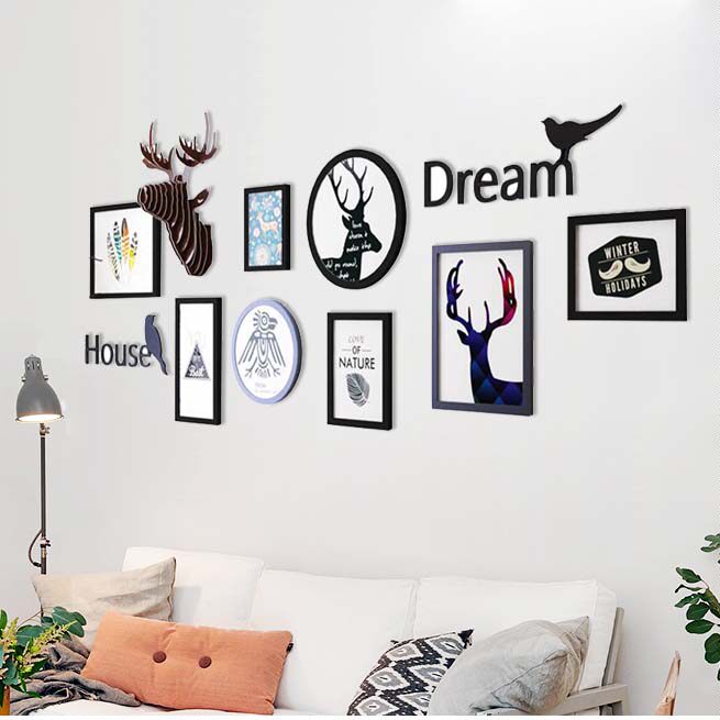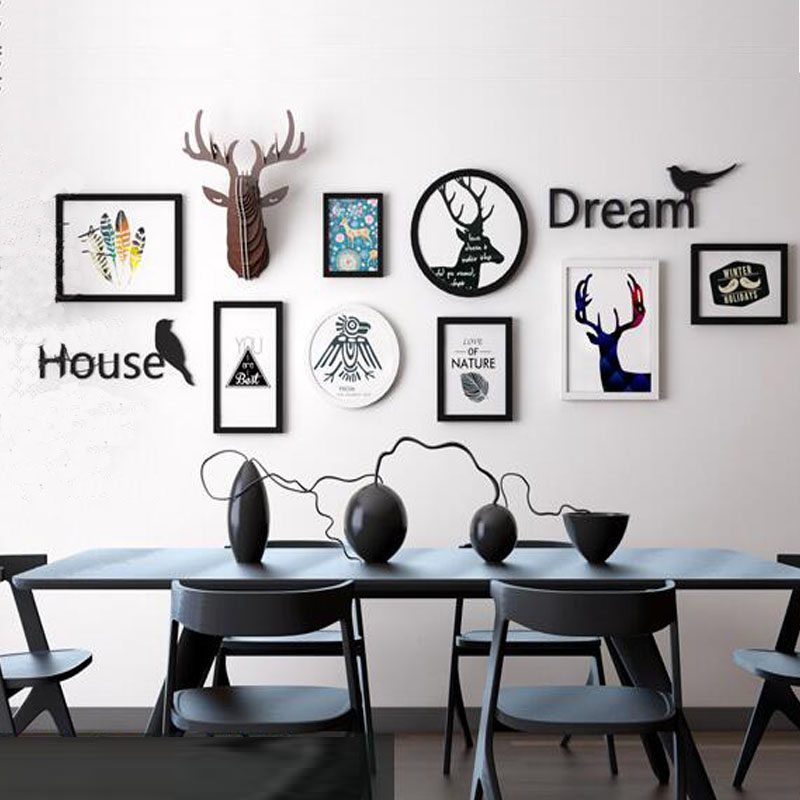 Nordic Minimalist Solid Wood Creative Photo Wall Photo Wall Wall Living Room Sofa Background Wall Decoration Deer Head Combo Photo Frame