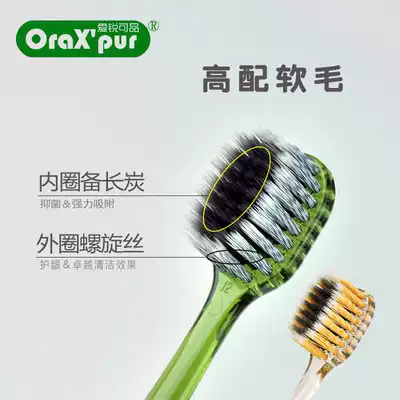 Airuke product adult soft hair small head toothbrush spiral silk long carbon soft hair small wide head toothbrush 2 sets