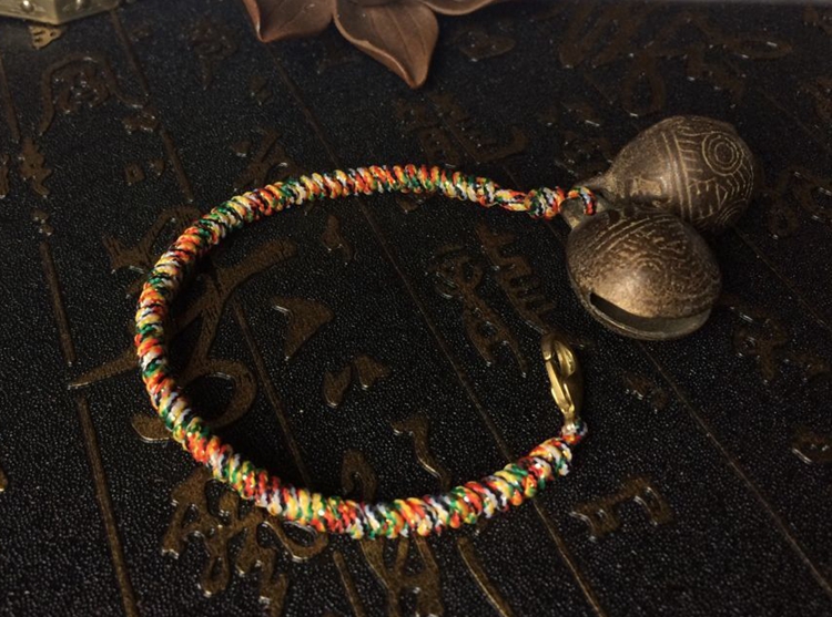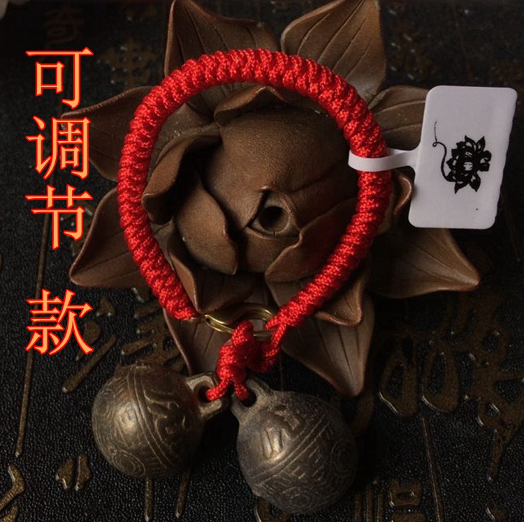 Baby red foot chain clear crisp double tiger Suzuki knot adjustable foot rope Older brass doing old bell-bell accessories