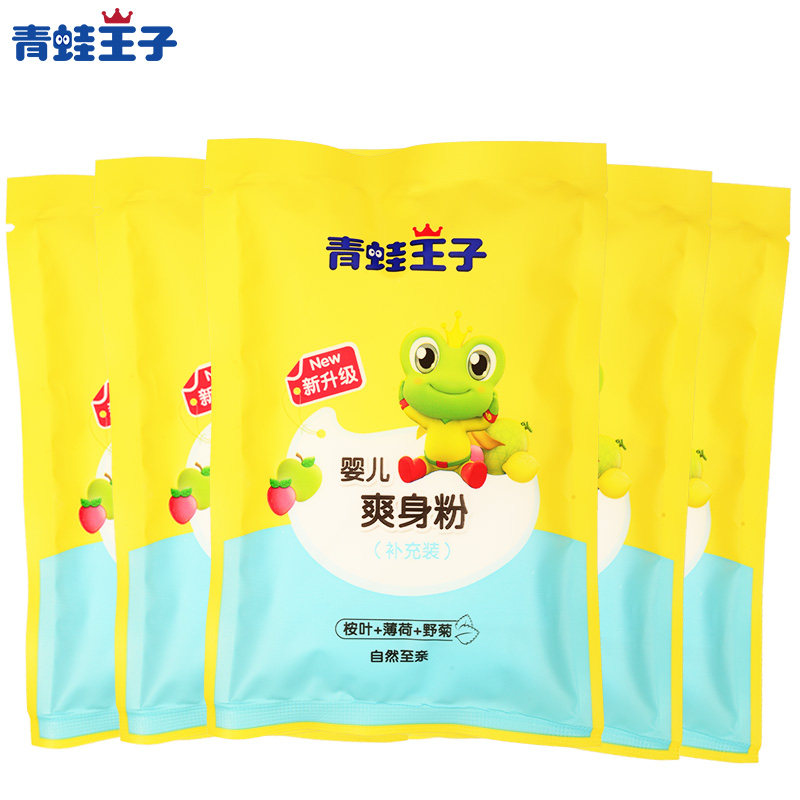 Frog Prince baby Talcum Powder 80g 5 bags refill pack Baby cool and comfortable moisture absorption antipruritic send puff