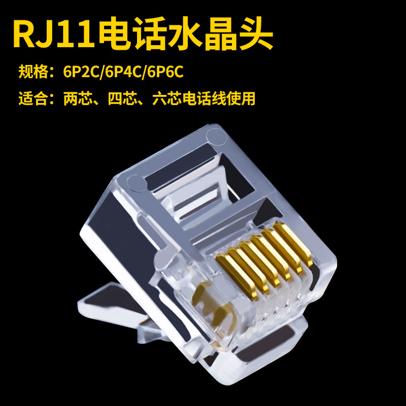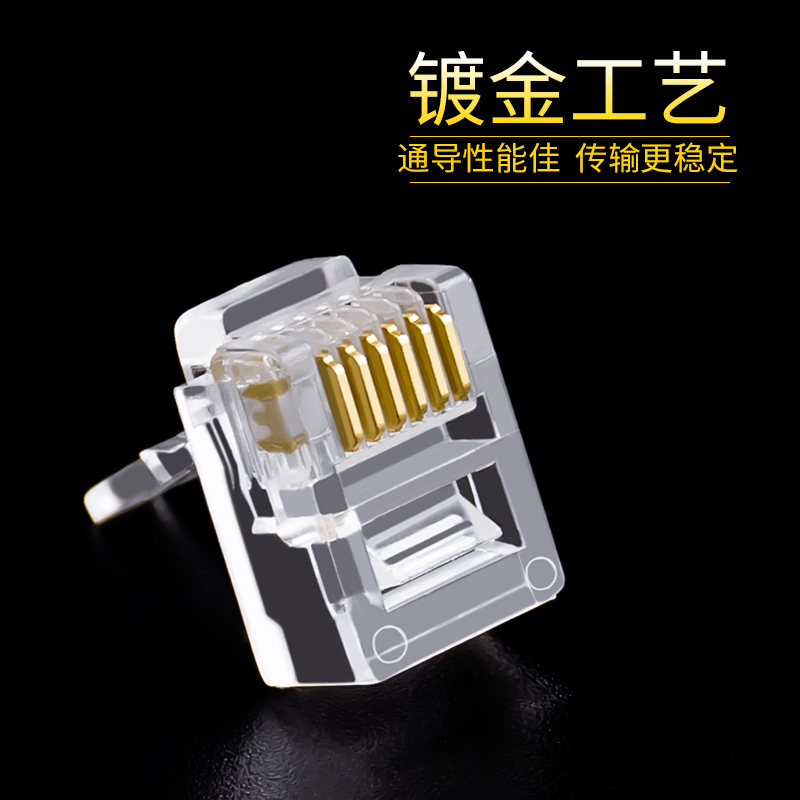 Pure copper gilded tripods 6P6C RJ11 Phone crystal head six-core telephone line Crystal head 100