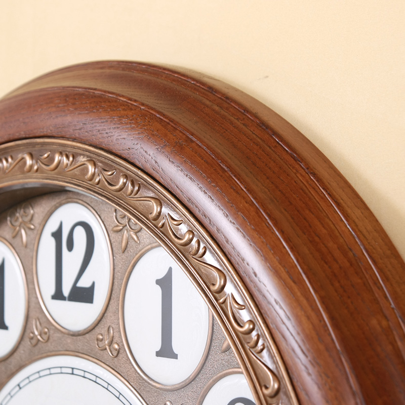 TQJ large number circular living room solid wood wall-mounted bell European style hanging table decoration quartz clock table mute bedroom clock