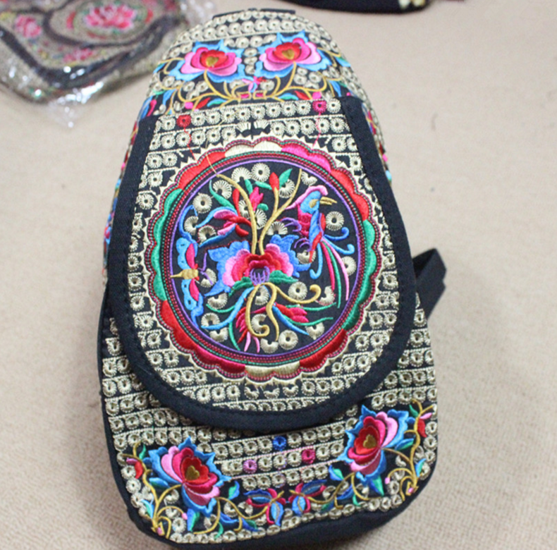 2016 new ethnic wind embroidered bag embroidered canvas single shoulder inclined satchel bag with small chest bag with double shoulder bag