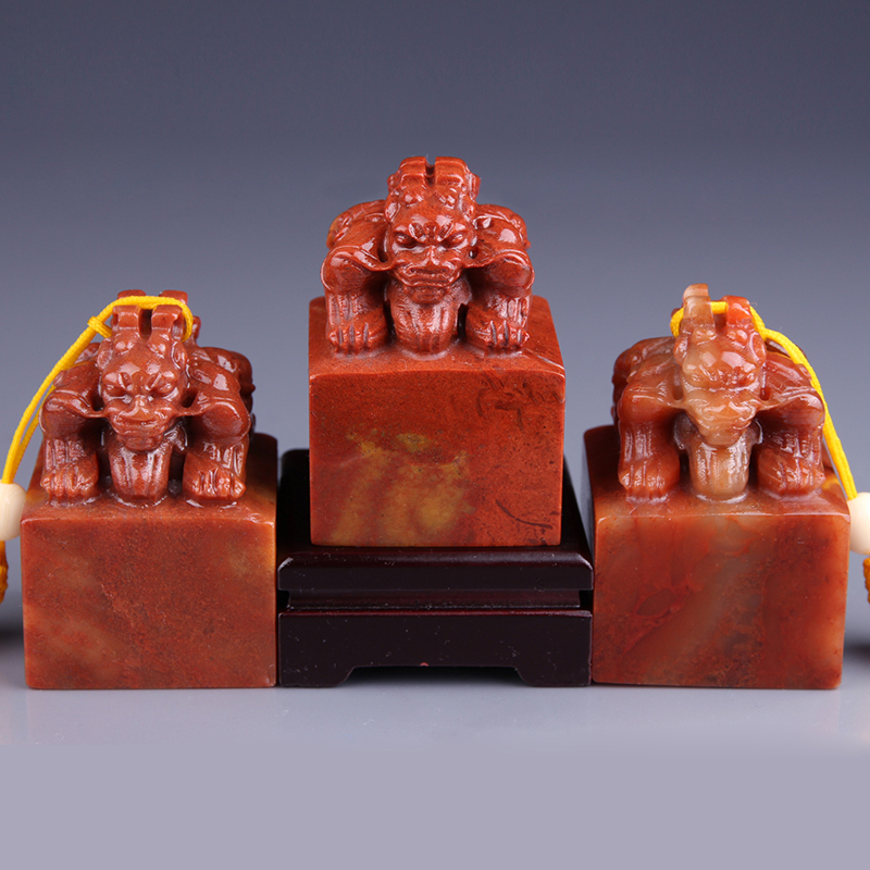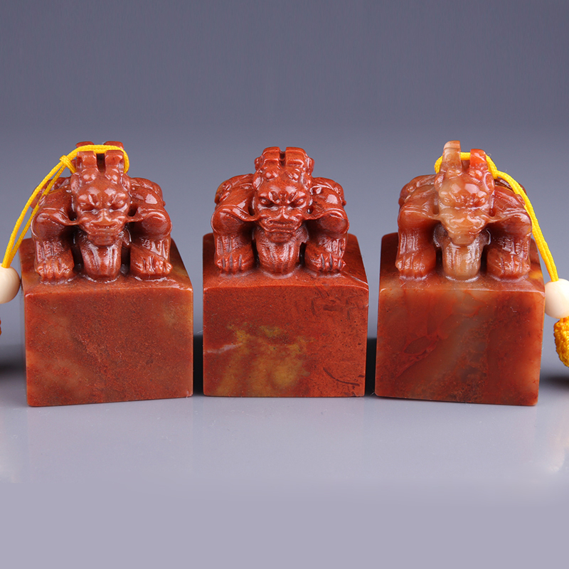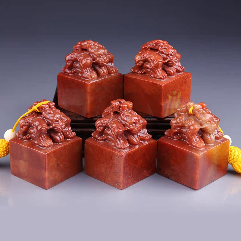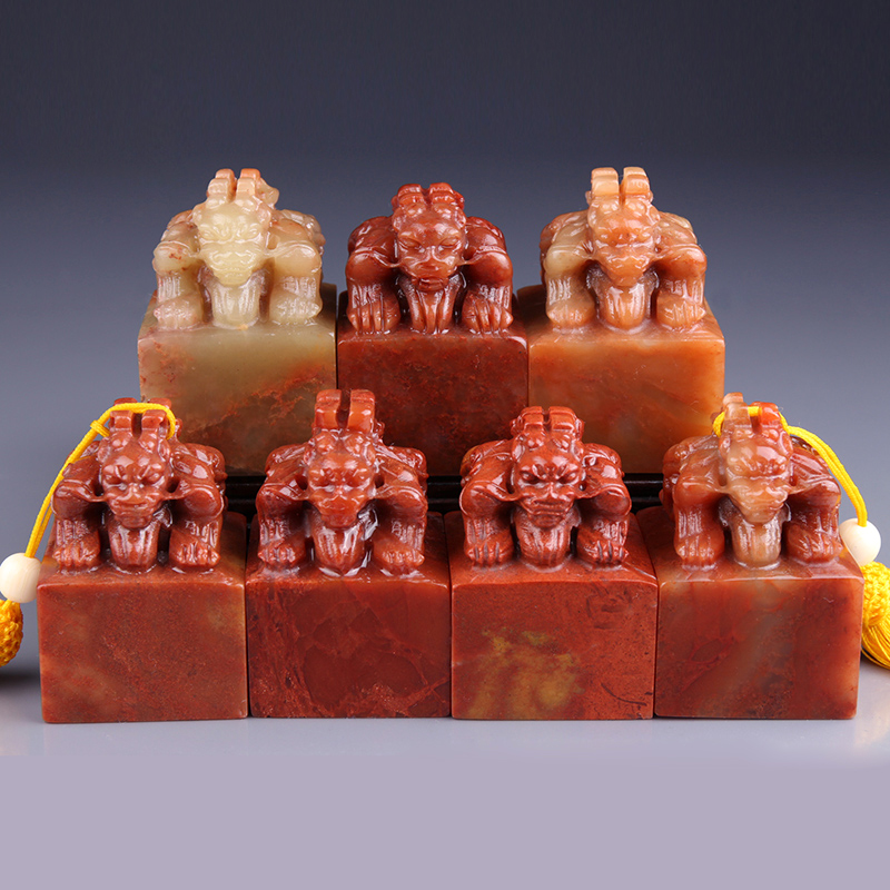 Shoushan Stone Double Head Beast Seal Engraving Seal Stone Name Calligraphy And Calligraphy And Calligraphy Seal Practice Printed Stone Seal Material 4x4x5