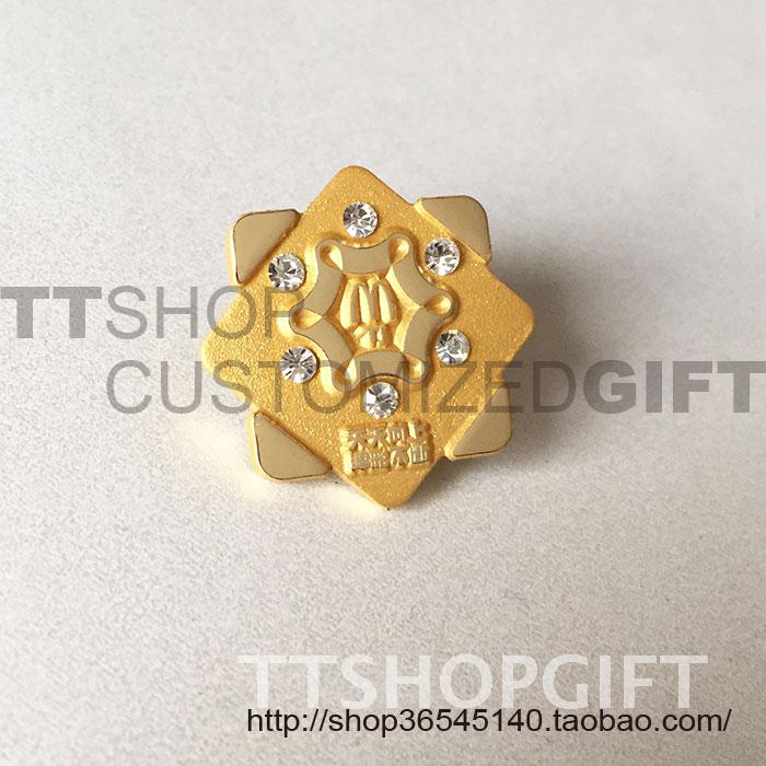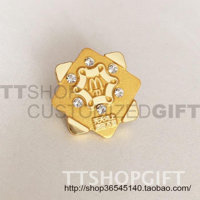 Clearance-McDonald's mcd luxury octagonal diamond-set metal badge commemorative badge badge pin pins support customization