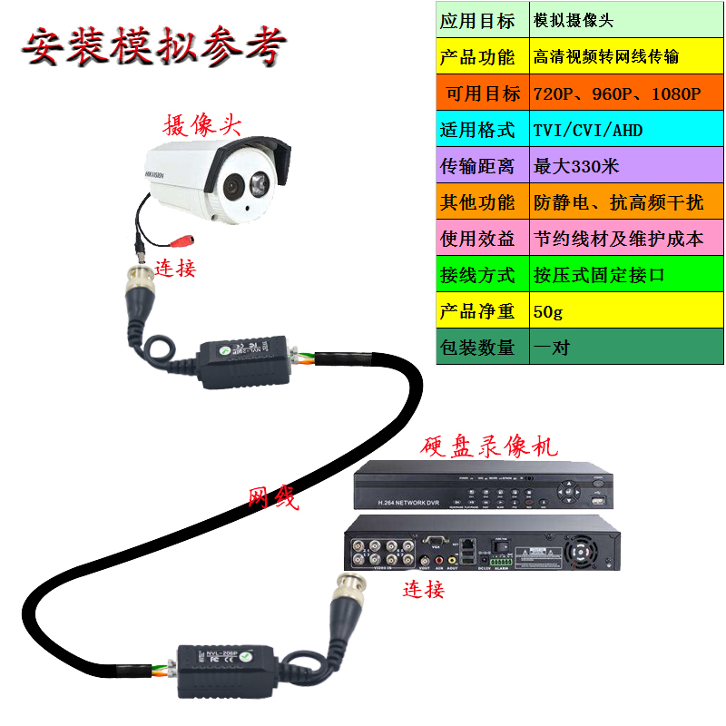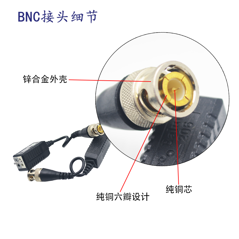 Video analog coaxial surveillance camera lens network transmitter passive twisted pair anti-jamming HD lightning protection BNC