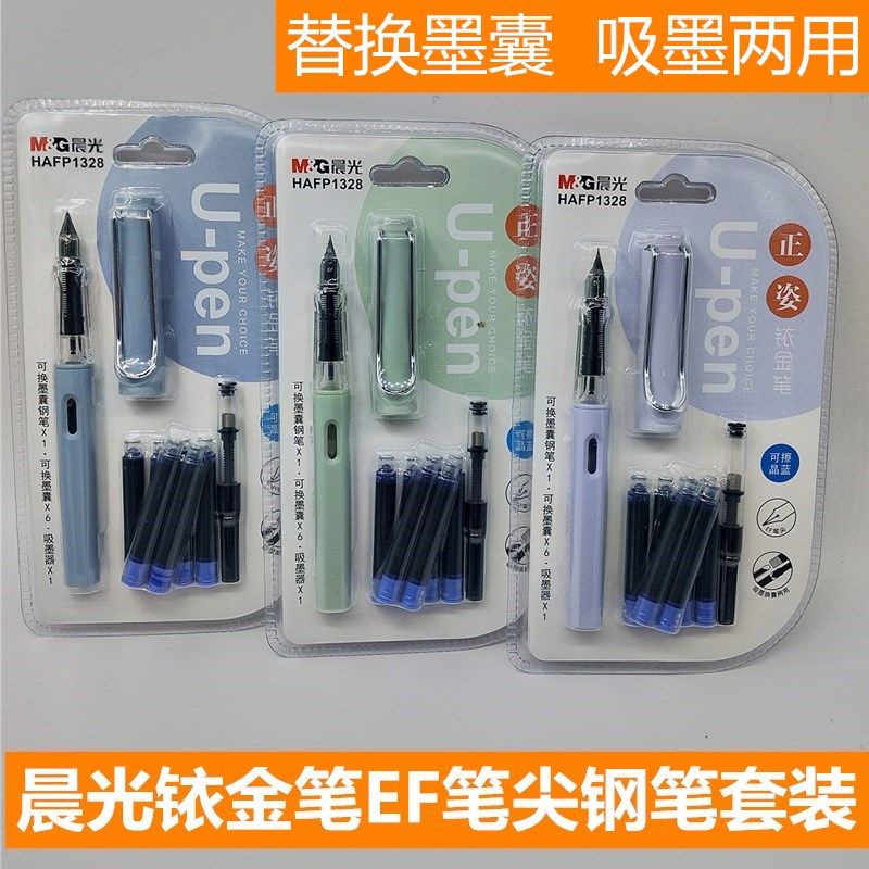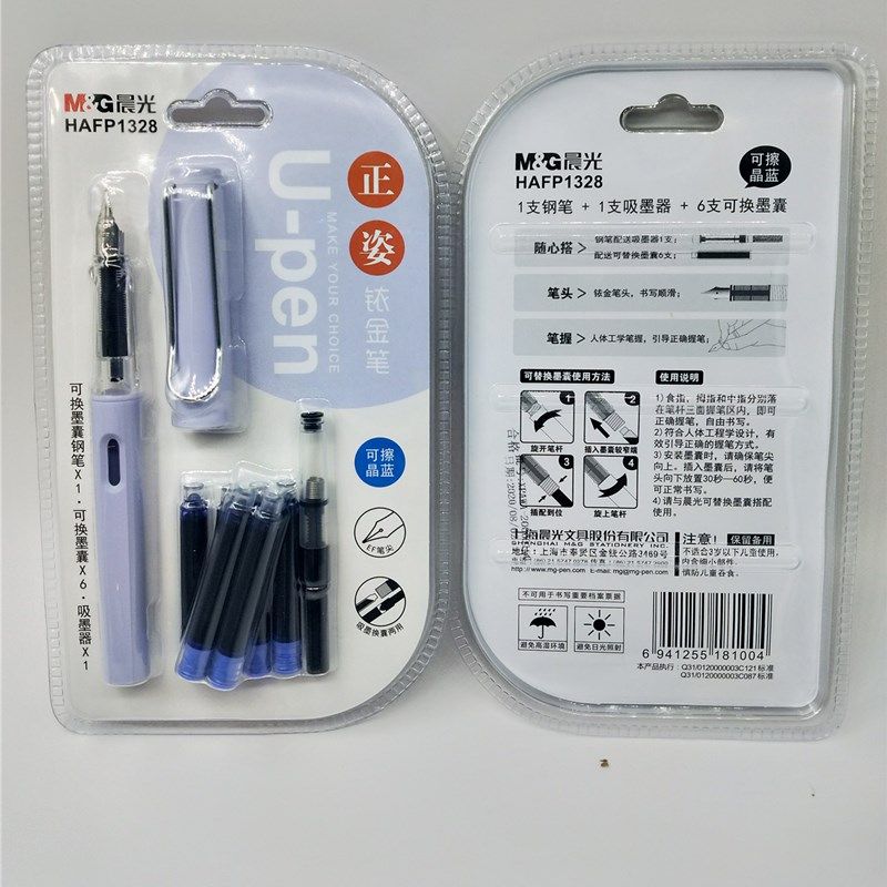 Chenguang pen set iridium gold pen EF nib HAFP1328 erasable crystal blue replacement ink sac ink absorption dual-purpose pen