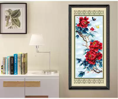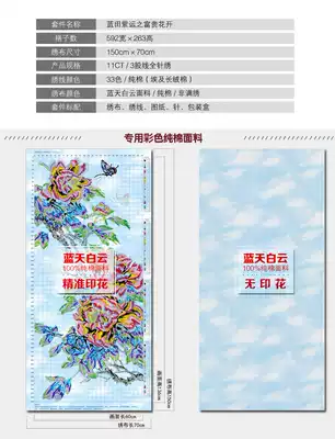 ABV Old three precision printing cross stitch new porch flower peony vertical version Blue field purple Yun desert rose Open