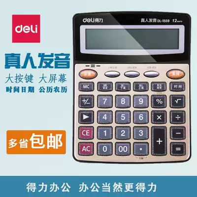 Deli 12-bit calculator for office with voice large screen large button Financial accounting special real pronunciation large multi-function calculator