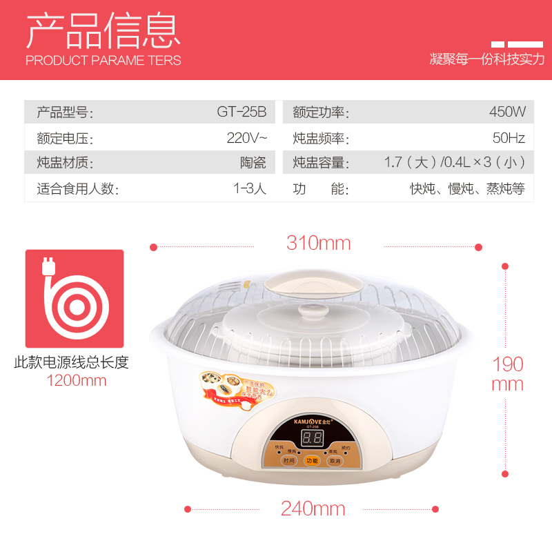 KAMJOVE gold foci GT-25B steam stew white porcelain water-stop saucepan appointment quick slow stew water-stop saucepan with a pan quadriliary