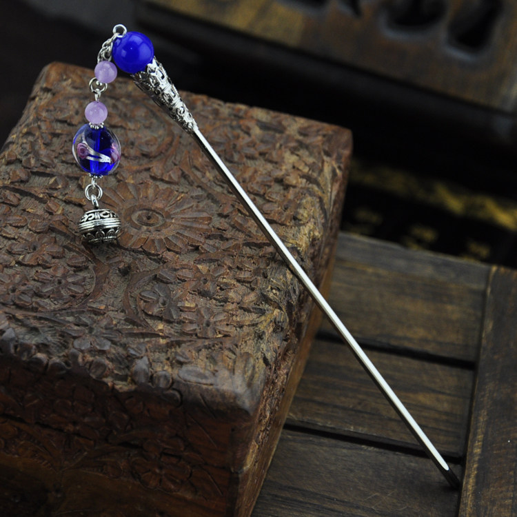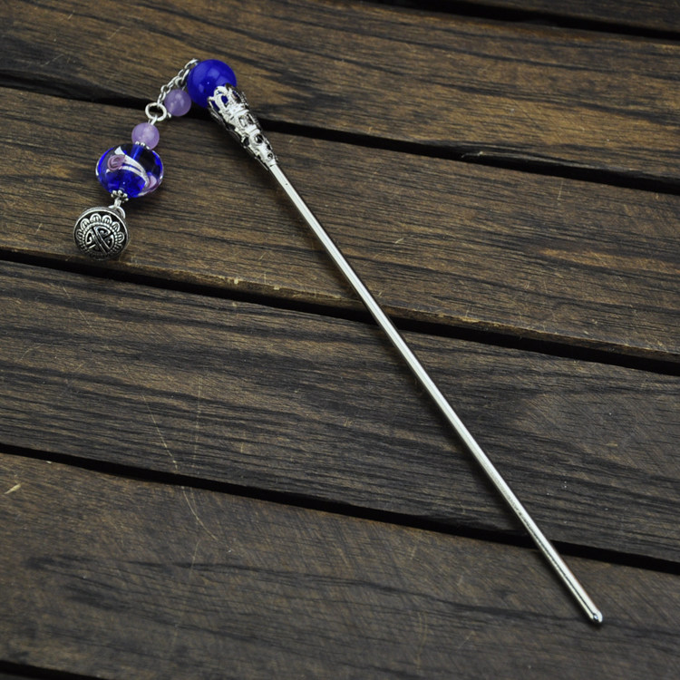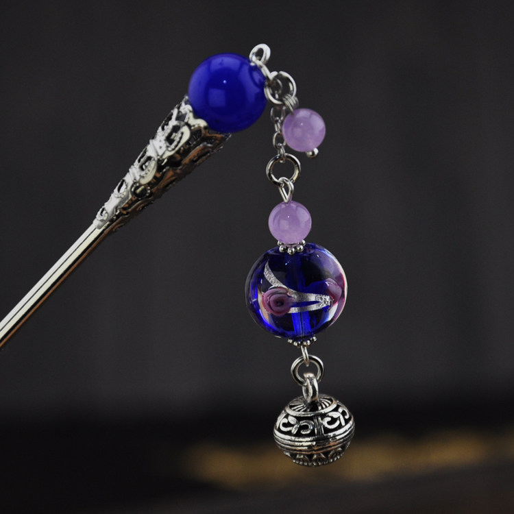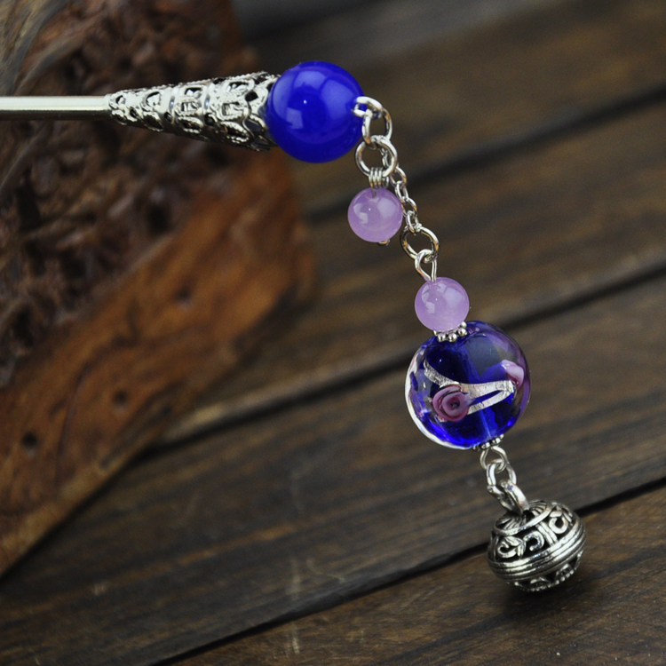 Retro Treasure Blue Inner Flower Glazed Jade Medullary Silver Streaming Suclassical Hairpin Substep to send a female gift