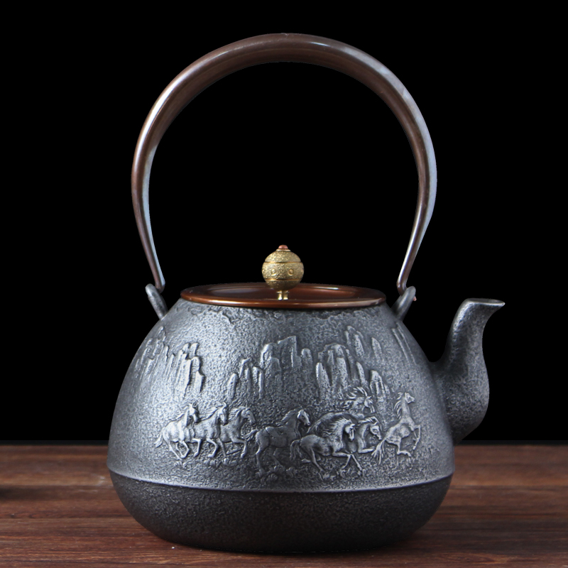 Japanese iron pot 2L large capacity old iron pot Cast iron pot Teapot Special black crystal furnace for making tea Special tea