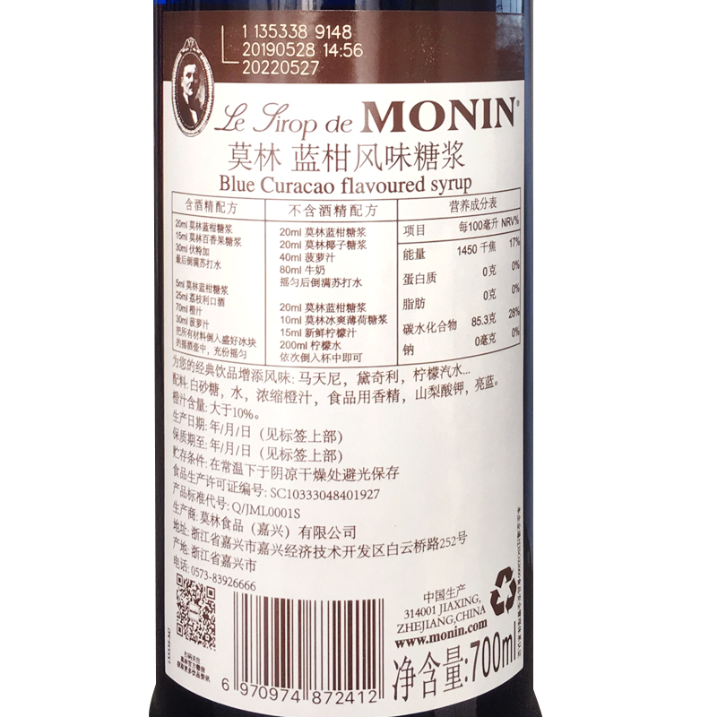 Gift Head Monin Morin Syrup Blue Mandarin Milk Tea Shop Exclusive Blend Coffee Concentrate Seasoned Fruity Notes Vial