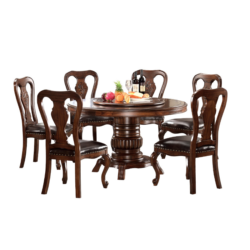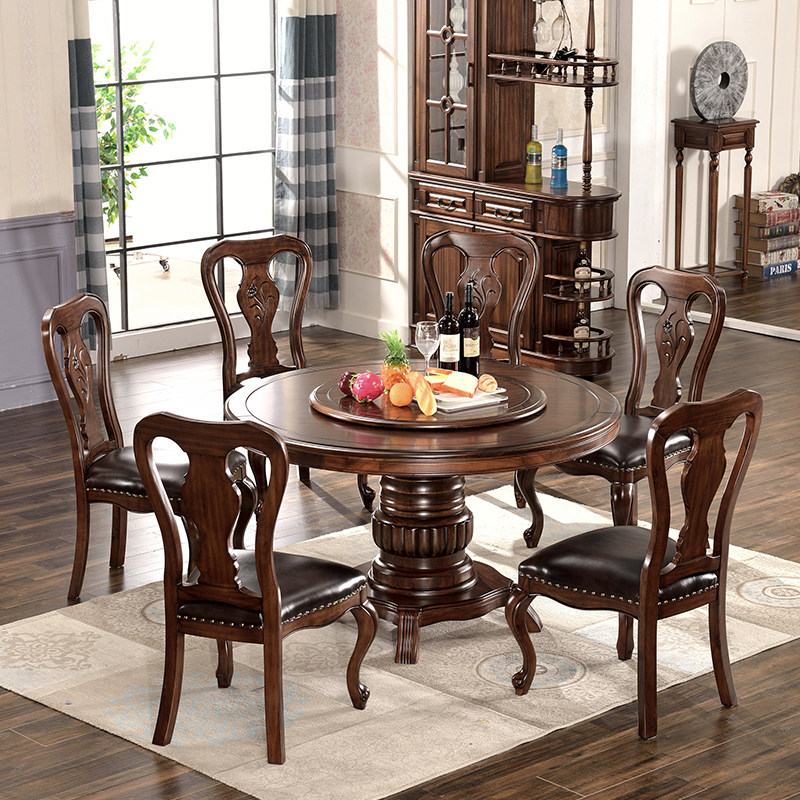 Gupo American round dining table black walnut solid wood round dining table and chair turntable high-end restaurant simple furniture
