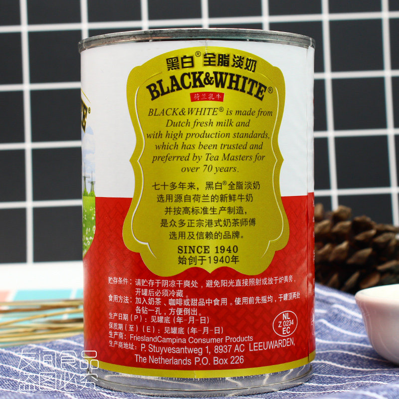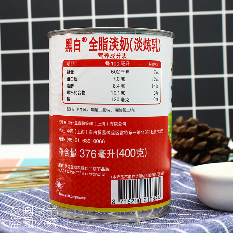 6 cans] Dutch black and white evaporated milk 400g full-fat evaporated milk Hong Kong-style stockings milk tea baking raw coffee