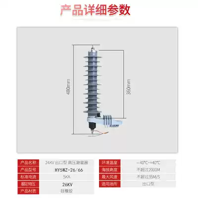 Factory direct 24KV high pressure zinc oxide arrester HY5WZ-24 66TL with mounting bracket