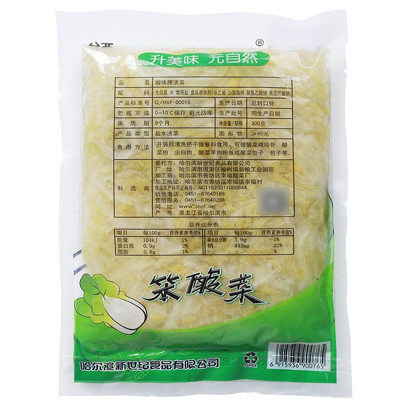 Liter Yuan bulky vegetable Northeastern special production Large-cylinder handmade pickled sour cabbage Silk 300g * 4 sacks