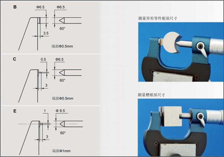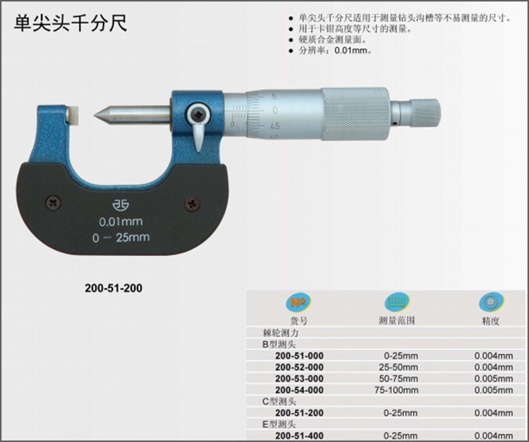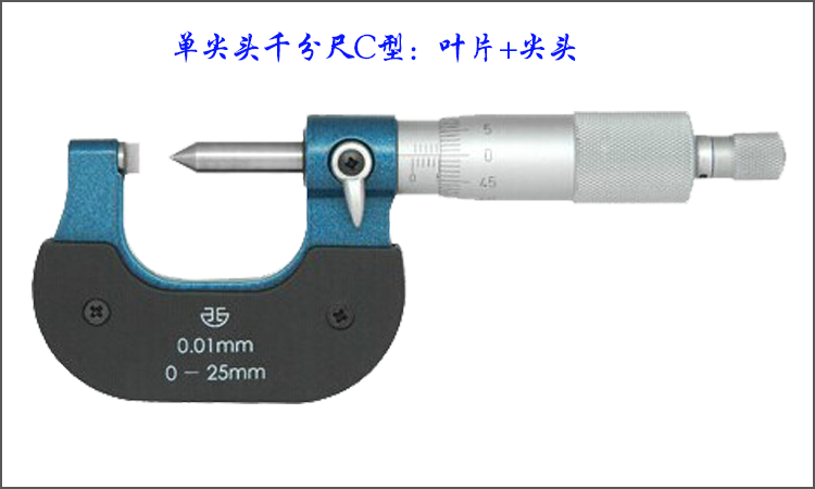 Green volume single pointed micrometer 0-25mm blade outer diameter micrometer C type tip flat head thin sheet