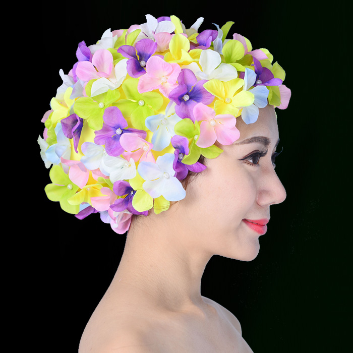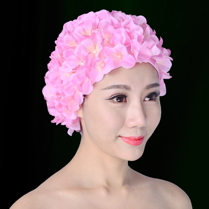 Pure hand-sewn three-dimensional simulation flower women's swimming cap adult high-end fashion hair care women's swimming cap