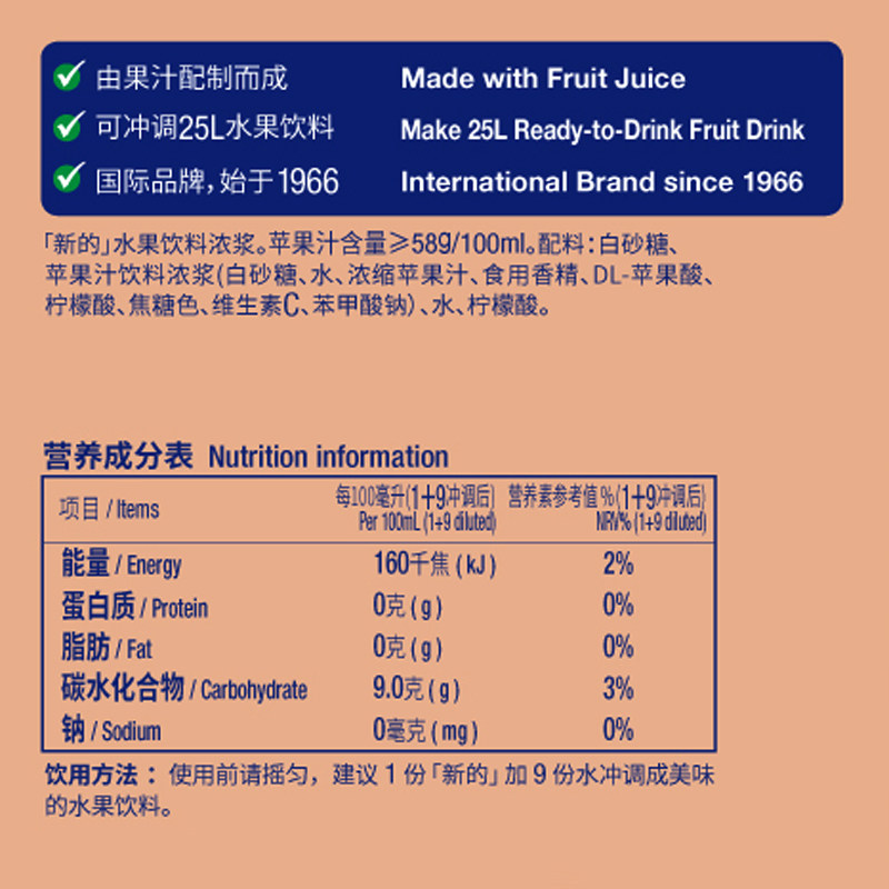 (Official Direct) Sunquick New Apple Juice Concentrate 2 5L Cocktail Accessories Juice Concentrate