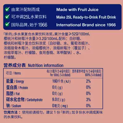 (Official direct) Sunquick New concentrated raspberry cherry juice 2 5L large cherry cranberries