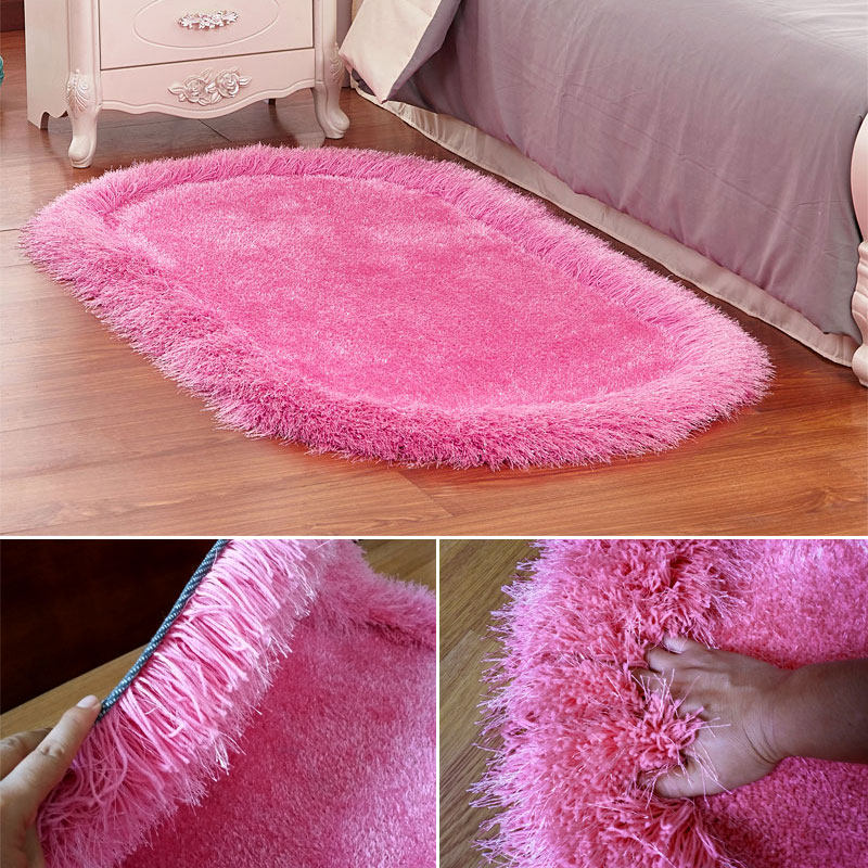 Oval carpet bedroom living room tea table bedside bay window tatami cute children's wedding room elastic silk