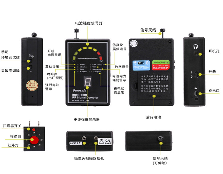 Anti-eavesdropping anti-sneak sound recording radio wave signal detector detector Taiwan confirmed security equipment