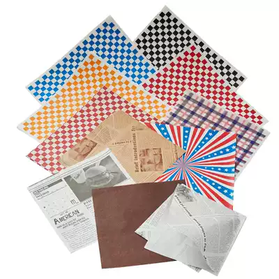 Kuqi creative cutlery Net Red imported oil-proof paper snacks fries mat paper red plaid brown English newspaper