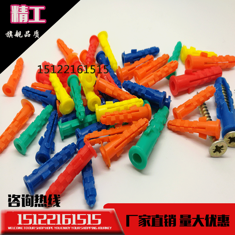 Five colorful small yellow fish flatulled plastic fluffy tube galvanized screw anchor bolt spike plug gel plug puffy screw