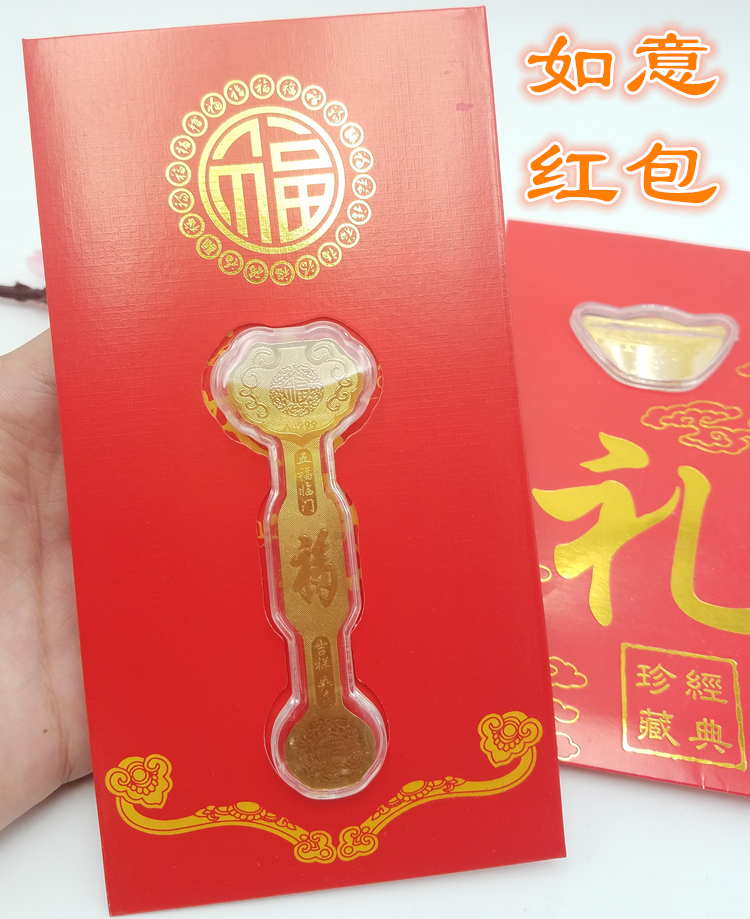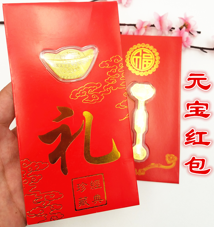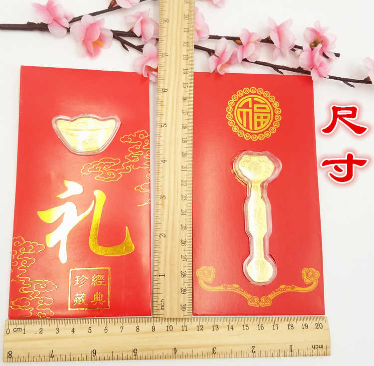 The gold bar of the new year money, red envelope insurance opens the red gift