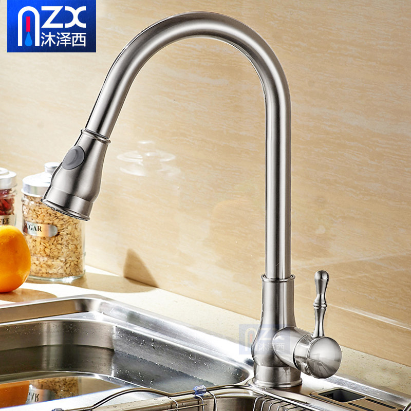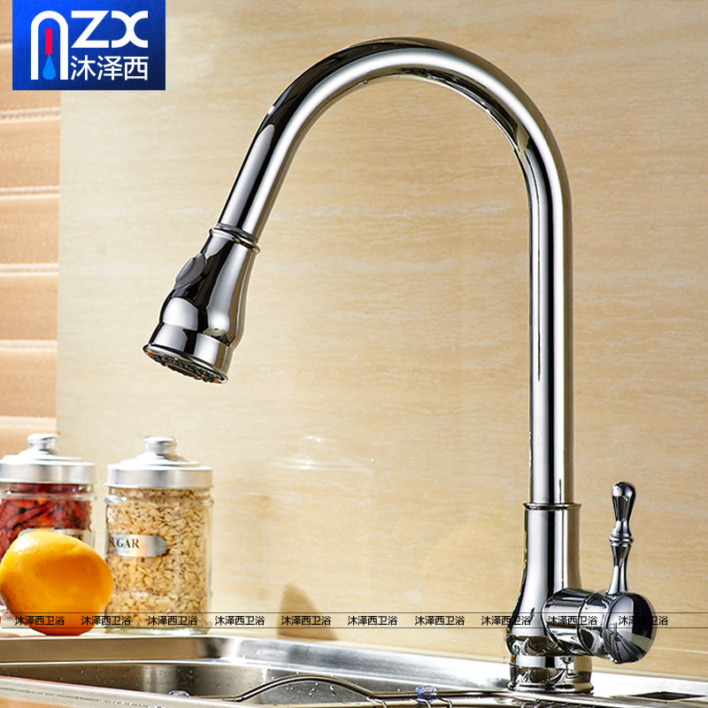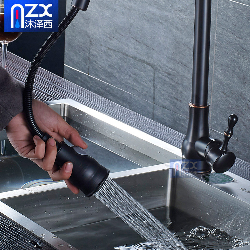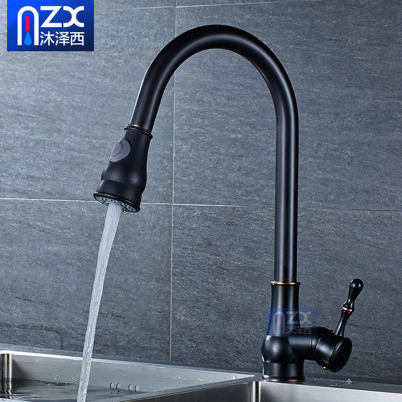 All-copper pull-out kitchen black faucet hot and cold stretch sink washing dishes wash basin faucet European and American black bronze