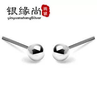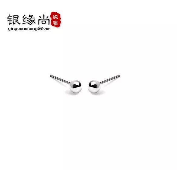 s990 sterling silver ear stud small round beads simple cute female Doudou ear needle ear needle ear rod with earplugs hypoallergenic